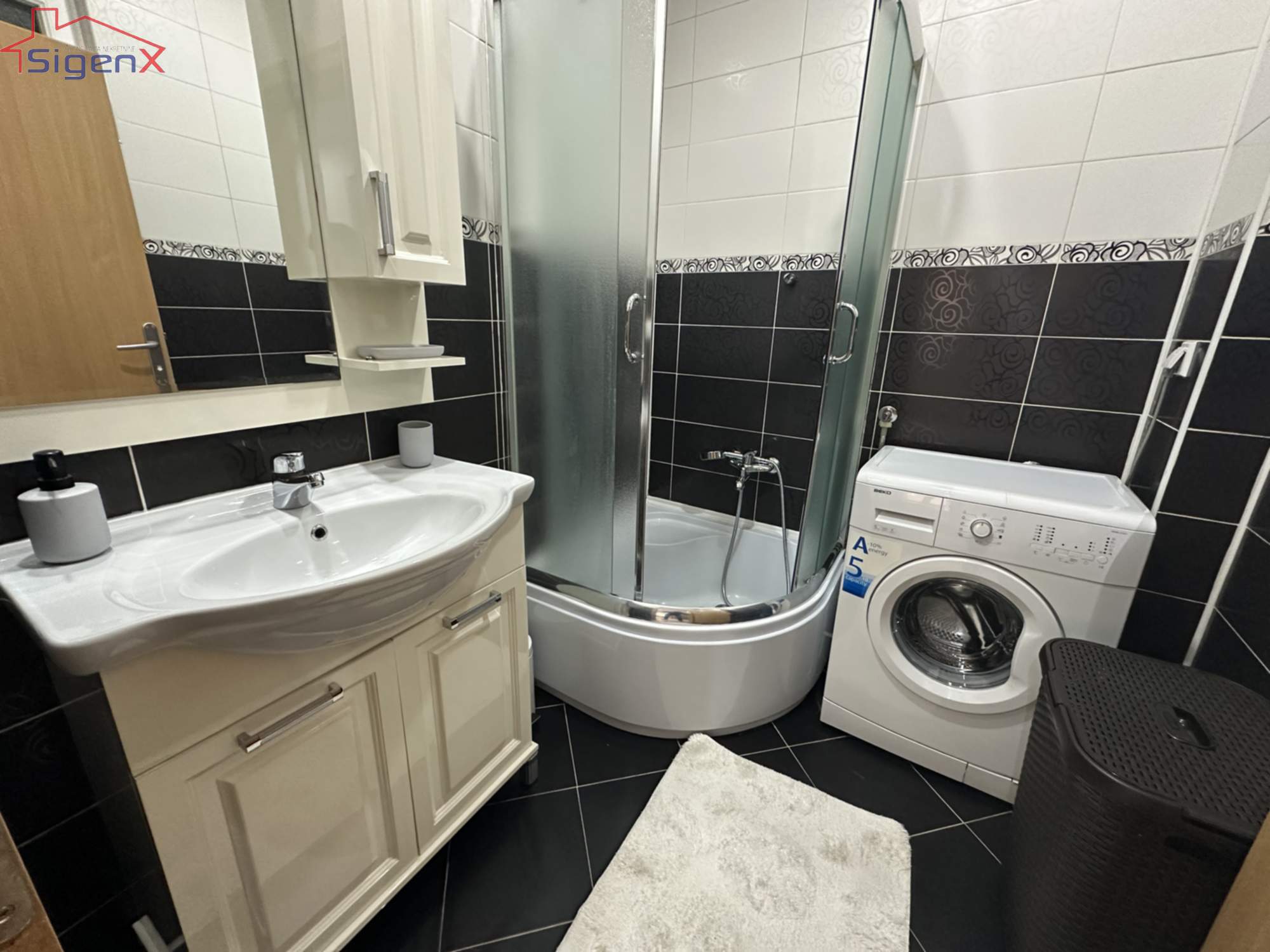 jedna spavaća sobaStan je kompletno i moderno namješten, sa gotovo novim namještajem i kućanskim aparatima, vrlo malo korištenim.