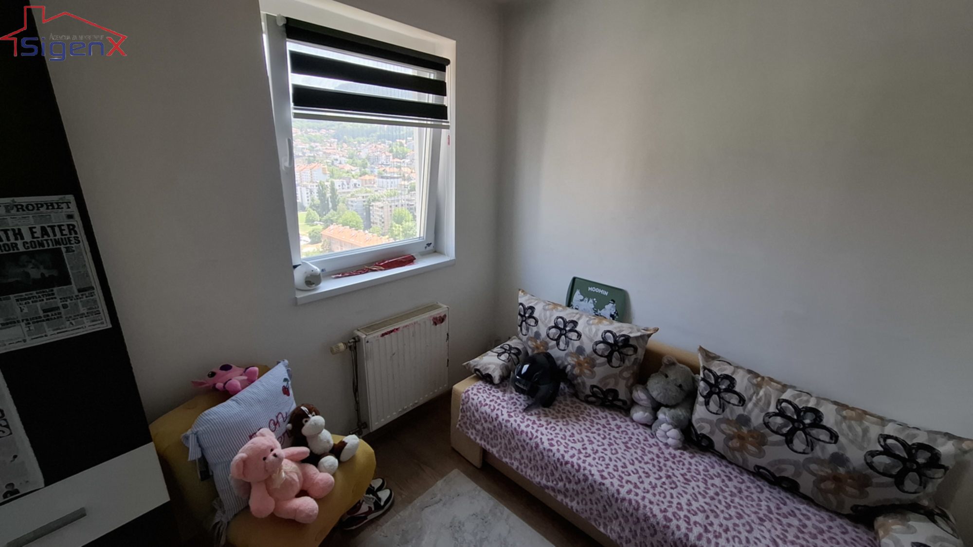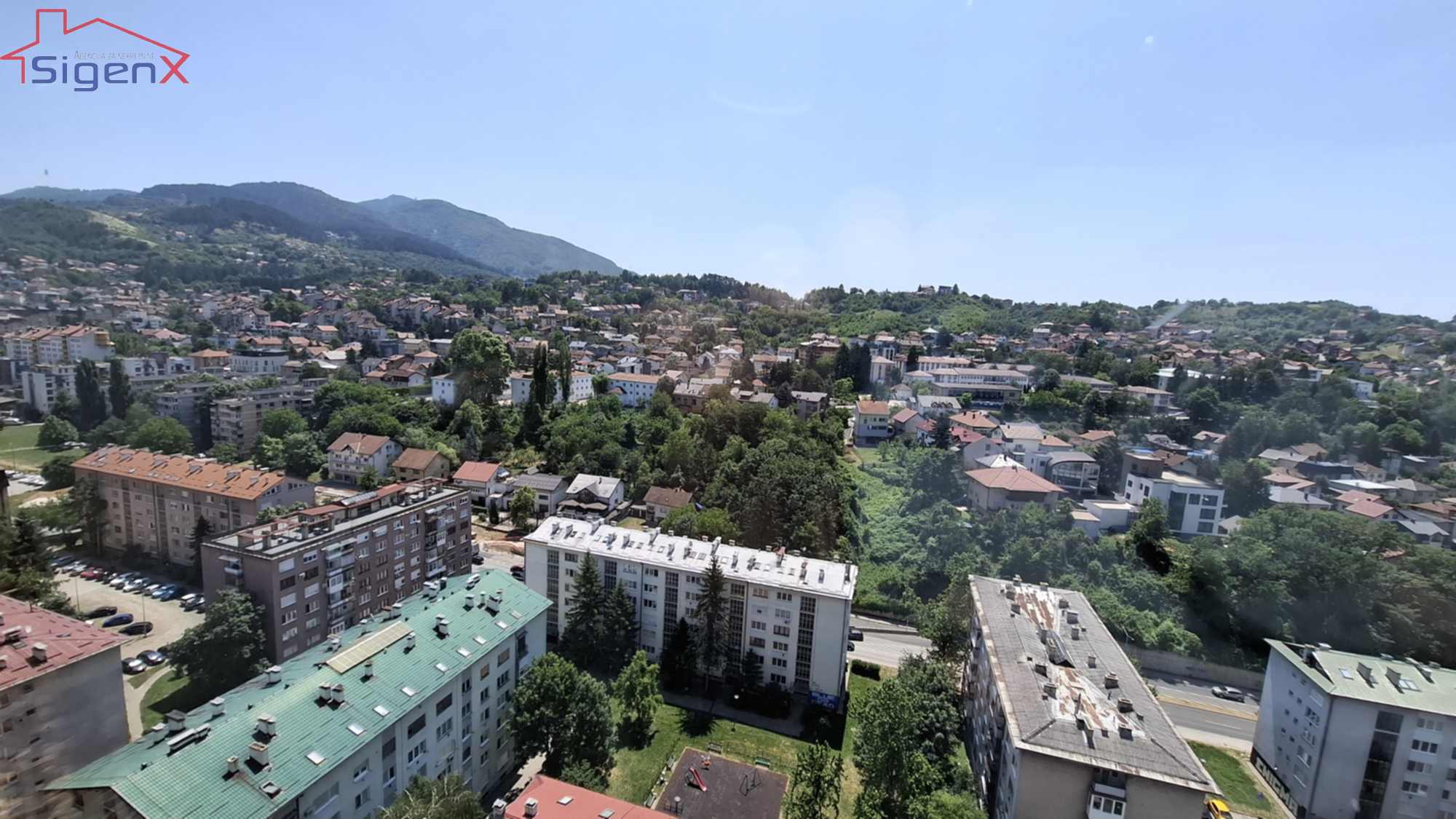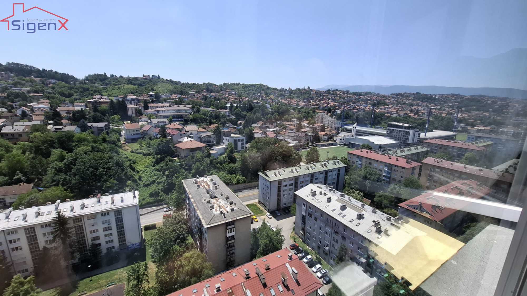 Agencija Sigenx prodaje adaptiran stan smješten na Grbavici-šoping centar, žuti neboder, u ul.Behdžeta Mutevelića. Stan se nalazi u 19 spratu stambene zgrade sa 2 lifta.Stan nije na zadnjem spratu.Ulaz zgrade je u odličnom stanju.Stan posjeduje 64 m2-dvoiposoban uknjiženog stambenog prostora,dok je nakon adpatacije stan proširen na troisposoban, te posjeduje dnevni boravak sa kuhinjom, trepezarijom, spavaća soba i 2 male sobe, kupatilo, hodnik i balkon.Stan je komplet adaptiran prije 4 godine.Unutrašnja i vanjska stolarija su u potpunosti zamijenjeni, postavljeni su novi podovi,izvršena je potpuna rekonstrukcija vodovodnih i električnih instalacija.U stanu je razvedeno centralno gradsko grijanje.Pogled je otvorenog tipa i gleda prema željinom stadionu, veoma je sunčan i maksimalno kvadratura iskorištena.Zgrada je u odličnom stanju, veoma dobro se održava.Lokacija je idealna za život, a naselje Grbavica je među najboljim u Sarajevu, sa puno zelenila,