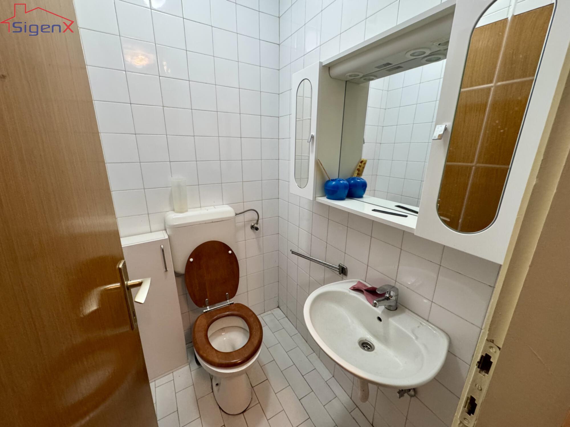 Nekretnina sa velikim mogućnostima, trenutno stanje je useljivo,sve instalacije su ispravne i funkcionalne, podovi su obloženi parketom koji je iskoristiv, vanjska stolarija je novo postavljena PVC u svim prostorijama sa vanjskim roletnama, kupatilo i instalacije su promjenjene, grijanje je plinsko etažno (nov bojler postavljen), blindirana vrata.Kuhinja renovirana prije nekoliko godina i malo korištena!